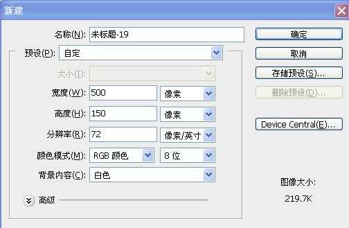 首先打开ps,然后创建一个画布:500x150 背景色随意。