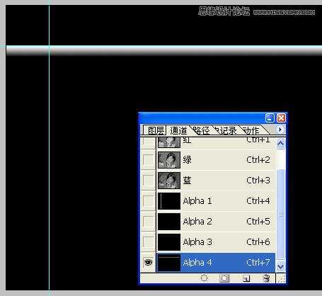 2:进入通道面板,点击“创建新通道”按钮,新建立一个Alpha 1通道,点击Alpha 1通道,选择矩形选框工具(M),对准纵向参考线向右拖拽出一个矩形,选择渐变工具(G),将背景色前景色设置为黑、白(D、X),选择线性渐变白色-->黑色,按住shift如图拖拽