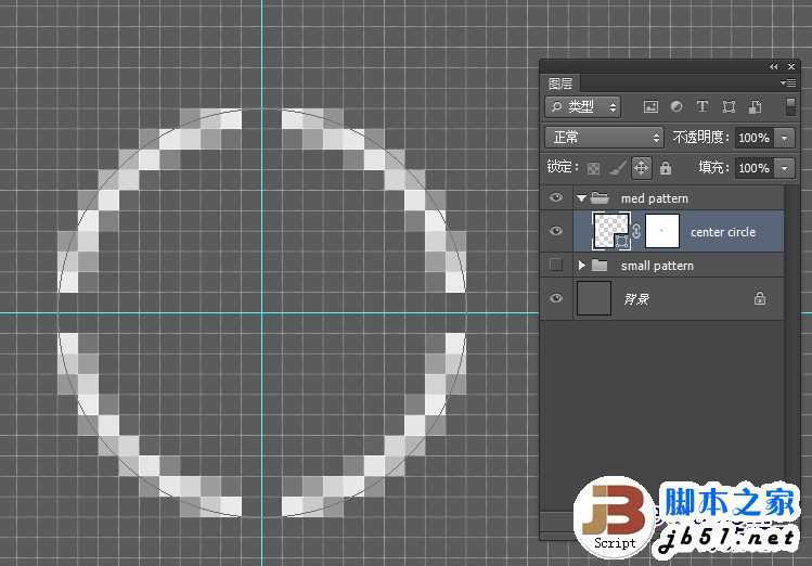 步骤 1:建一个组-med pattern。在画布中心画一个圆,直径20px,描边1pt。