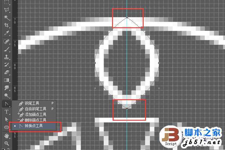 步骤 9:选择转换锚点工具,将椭圆的上下两个锚点变为尖角。