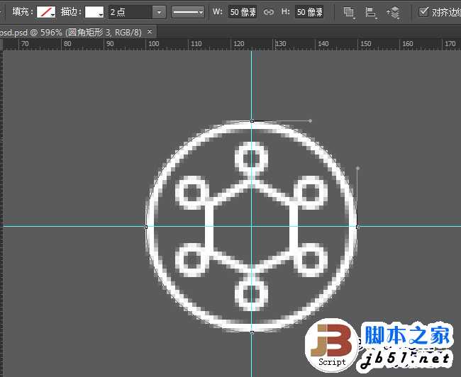 步骤 3:画一个直径50px的大圆,描边2px,放在如下位置。
