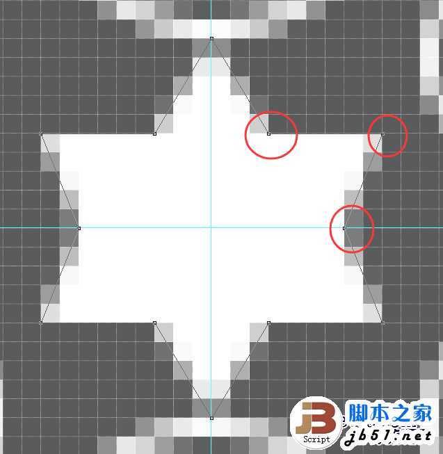 步骤 6:放大来检查,选择视图-显示-像素网格,对六角星的每个锚点进行调整,让每个锚点都对应网格的交叉点。