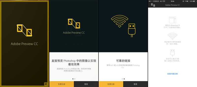 这次的更新中,Device Preview也算是一大亮点!功能很简单——安装移动端App(Adobe Preview),通过WIFI或USB即可进行多端同步,经测试,显示效果很好,同步稳定时间快(延迟三秒左右,不同大小文档时间不同),多画板时可以在App中直接选择要看哪个,什么PsPlay、ScreenRunner,都可以Say Goodbye了~