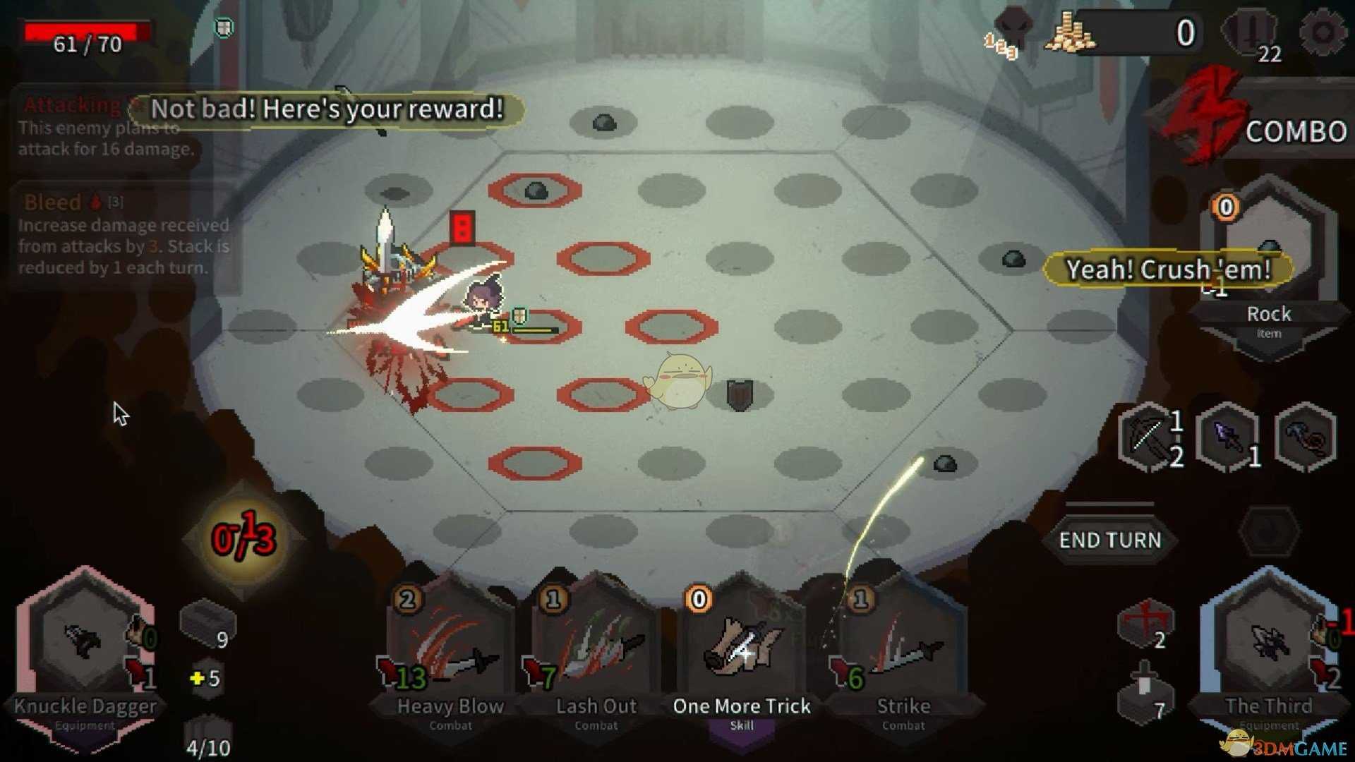 终结技,基于已造成伤害次数打出伤害,本身是一费,搭出血流动辄十连击能造成相当不错的伤害,其他体系不建议拿。(实际上出血流也不差你这张牌)